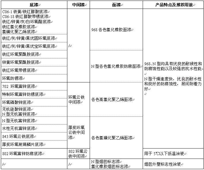 防腐漆常用產品配套 >> 底漆+中間漆+各色氯化聚烯烴面漆