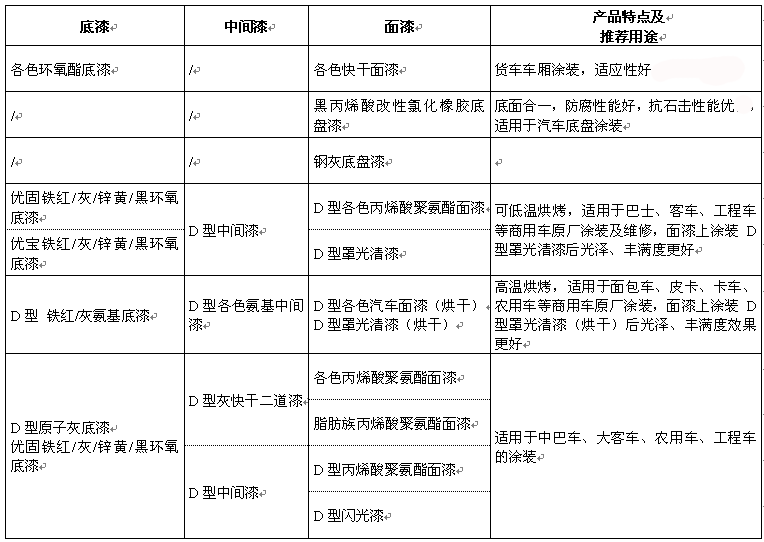 色彩豐富、快干、漆膜豐滿。用于中檔汽車涂裝及汽車部品、機(jī)械設(shè)備、儀器儀表的裝飾保護(hù)。