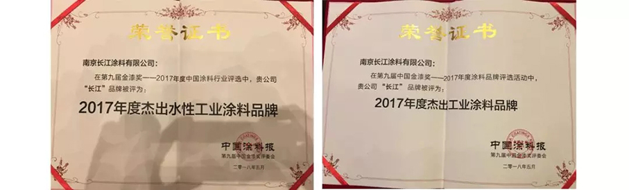 會上,長江涂料喜獲2017年度“杰出工業(yè)涂料品牌”和“杰出水性工業(yè)涂料品牌”兩項殊榮。這是市場對“長江”牌涂料產(chǎn)品的認(rèn)可,也是我司自身不斷努力的結(jié)果。