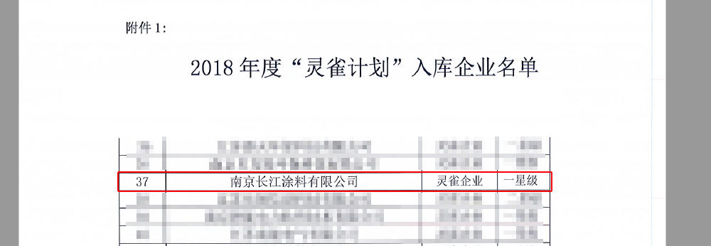 日前,南京江北新區(qū)發(fā)布了2018年度“靈雀計(jì)劃”入庫(kù)企業(yè)名單,南京長(zhǎng)江涂料成功入圍此次項(xiàng)目名單。